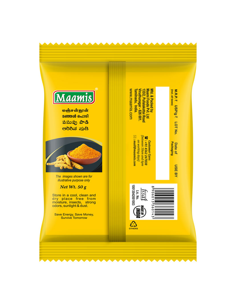 This Product is manufactured by grinding clean and dry Turmeric Fingers without loosing its characteristic taste and flavor. It is free from any coloring matter, preservative and extraneous matter.
